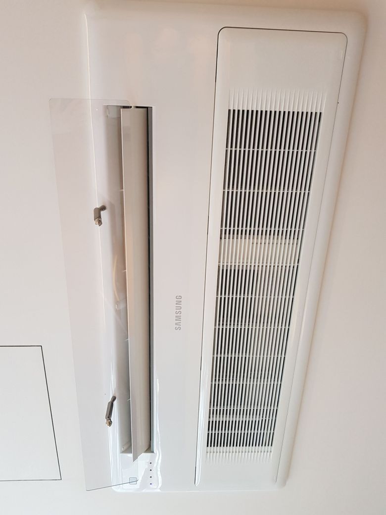 This air conditioning unit that was inbuilt into the ceiling caught my attention – for the clear glass ledge that is attached right under the vents.