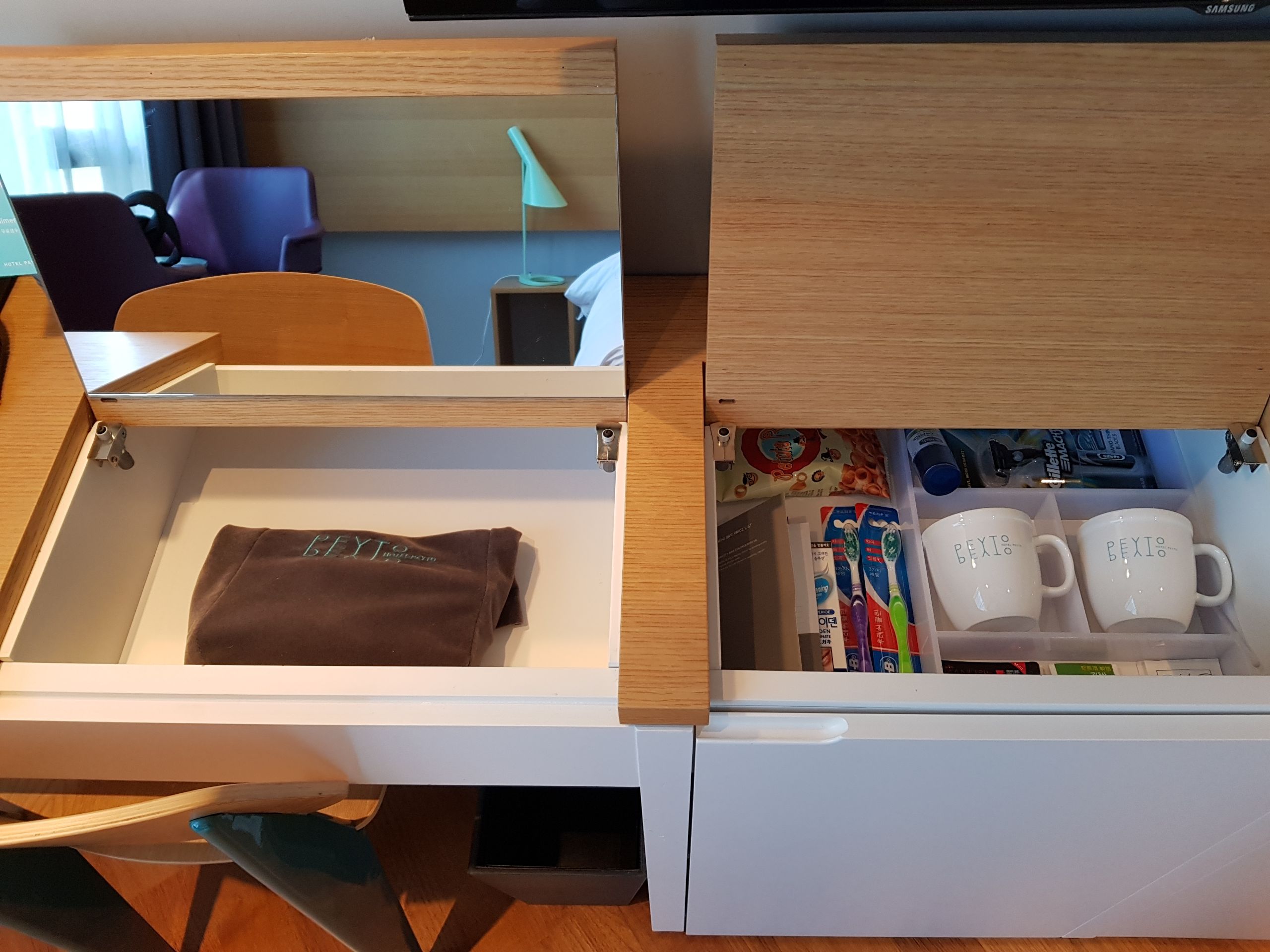 If you’re the type of traveller who absolutely must unpack and hang all your clothes, I think you’ll find the closet space here to be mind boggling. While the sliding door concept is pretty cool and space saving, I wasn’t able to hang more than a day’s worth of clothes. I do wish there was an iron provided in room, but that’s just me and my need for wrinkle free clothes.