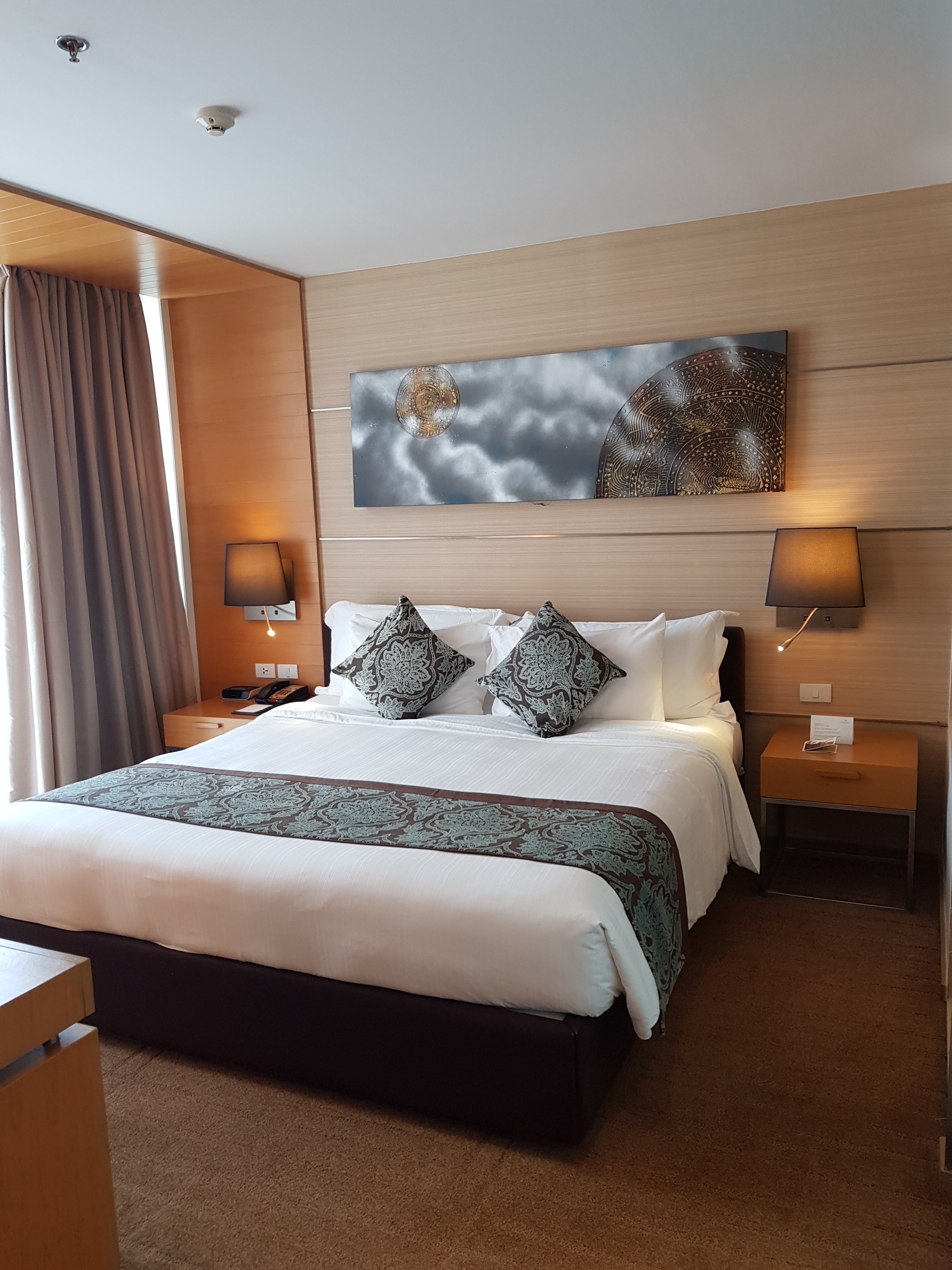 We were lucky to be assigned to the one bedroom suite which is a spacious 64m featuring a separate dining area from the bedroom and ensuite bathroom. When travelling alone it sometimes feels like too much room for just one person but would be perfect for couples or families.