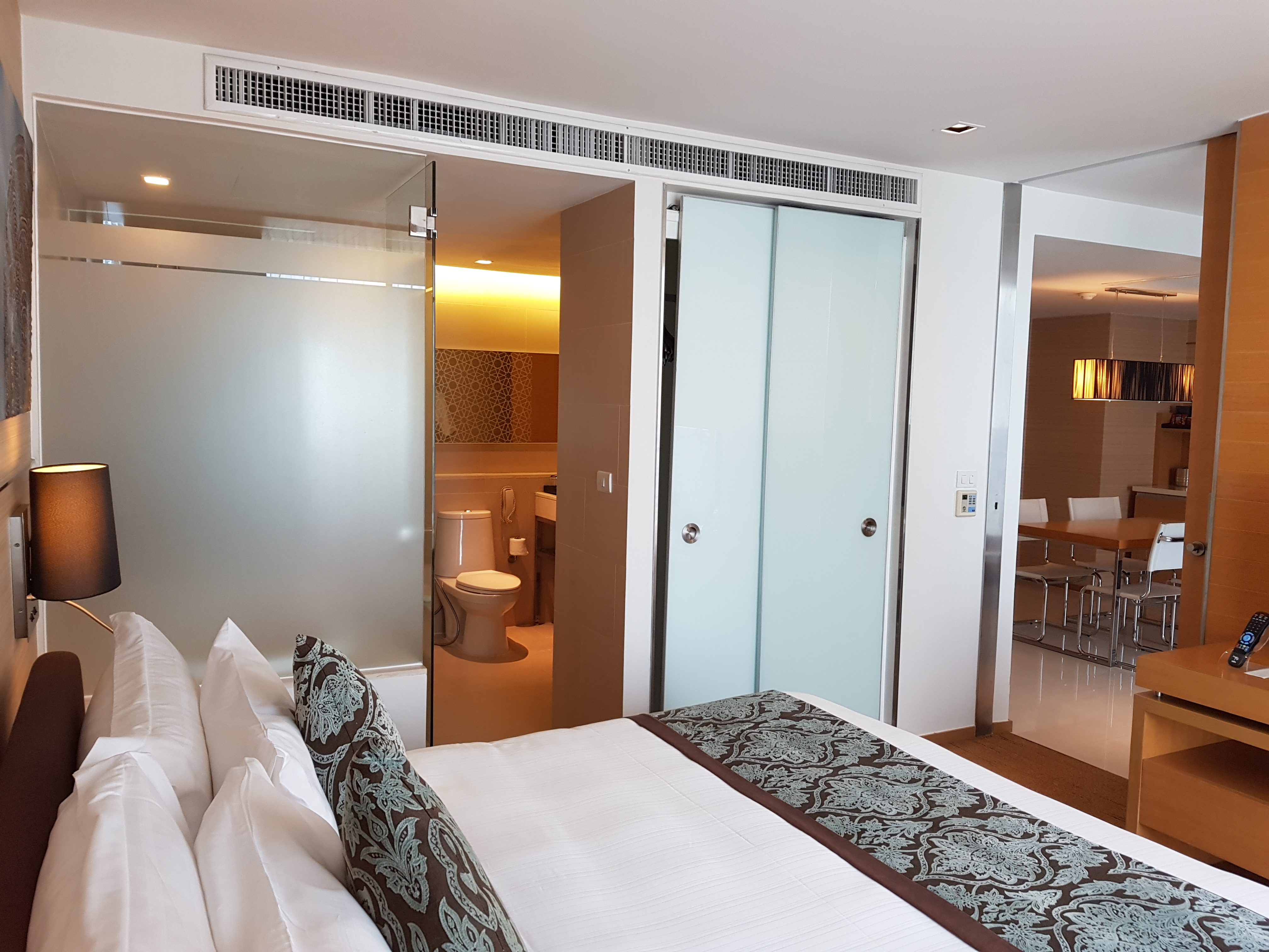 Doors on the right that lead to the bedroom and bathroom respectively. I like that the layout of the one bedroom suite is neatly laid out almost like a square.