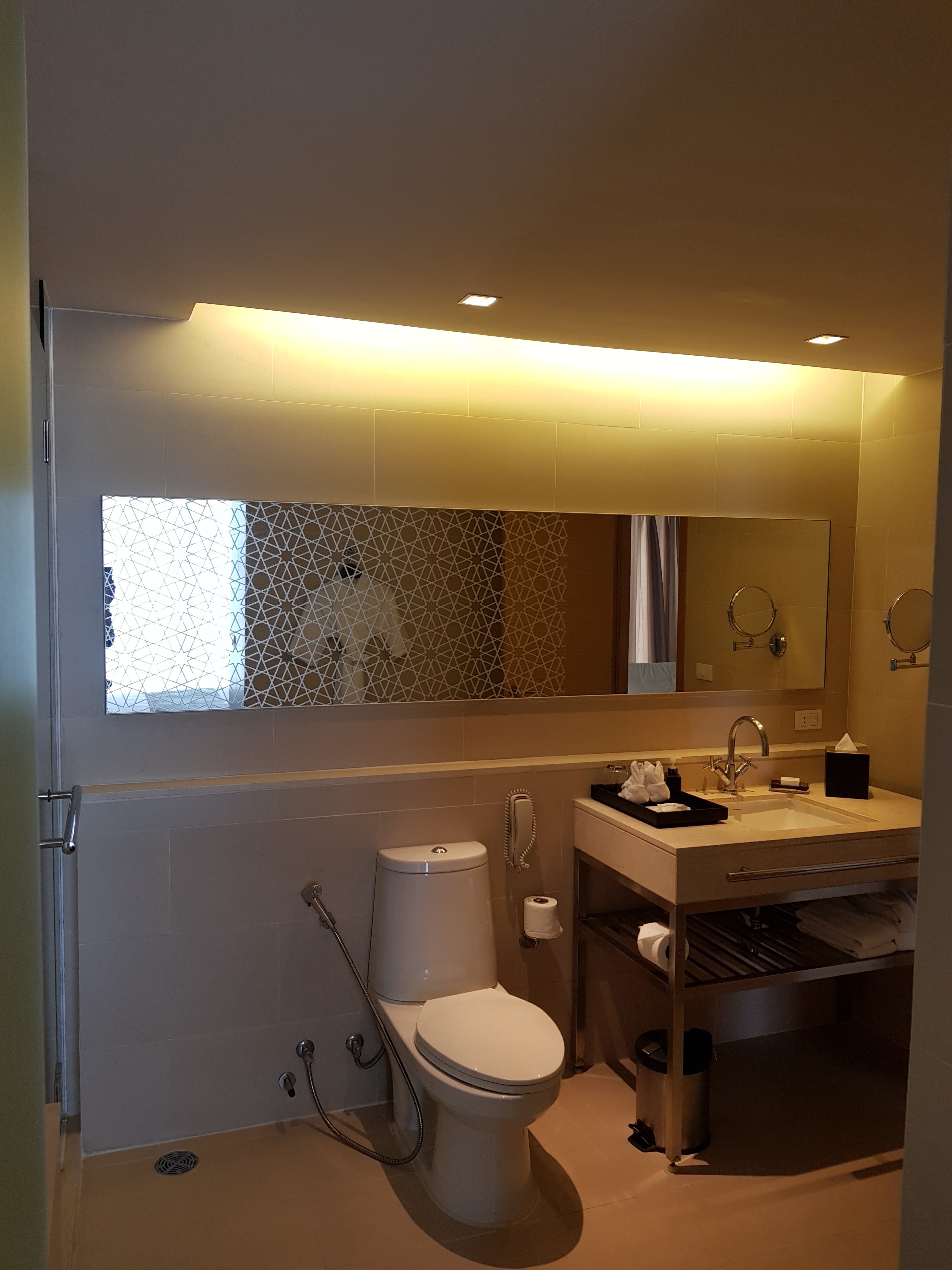 The bathroom features both a bathtub and a separate shower cubicle with rain shower function. Apparently this is a very ‘in’ thing to have but I personally don’t utilise rain showers. Not a fan.