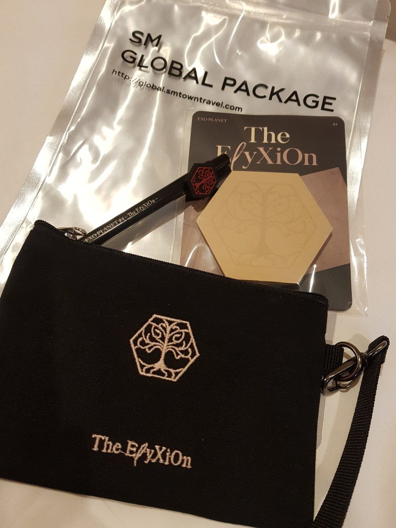 I managed to snag a package for the second day (my preferred date), so I only picked up my tickets at the hotel in the evening of the first day. There were only a few envelopes left with the staff, so I’m assuming most participants either went for the first concert night or managed to get both nights. The tour souvenirs for the ElyXiOn in Japan were different from the ones I got in Seoul, and based on a friend’s account of the Global Package in Singapore, she got something different there too.